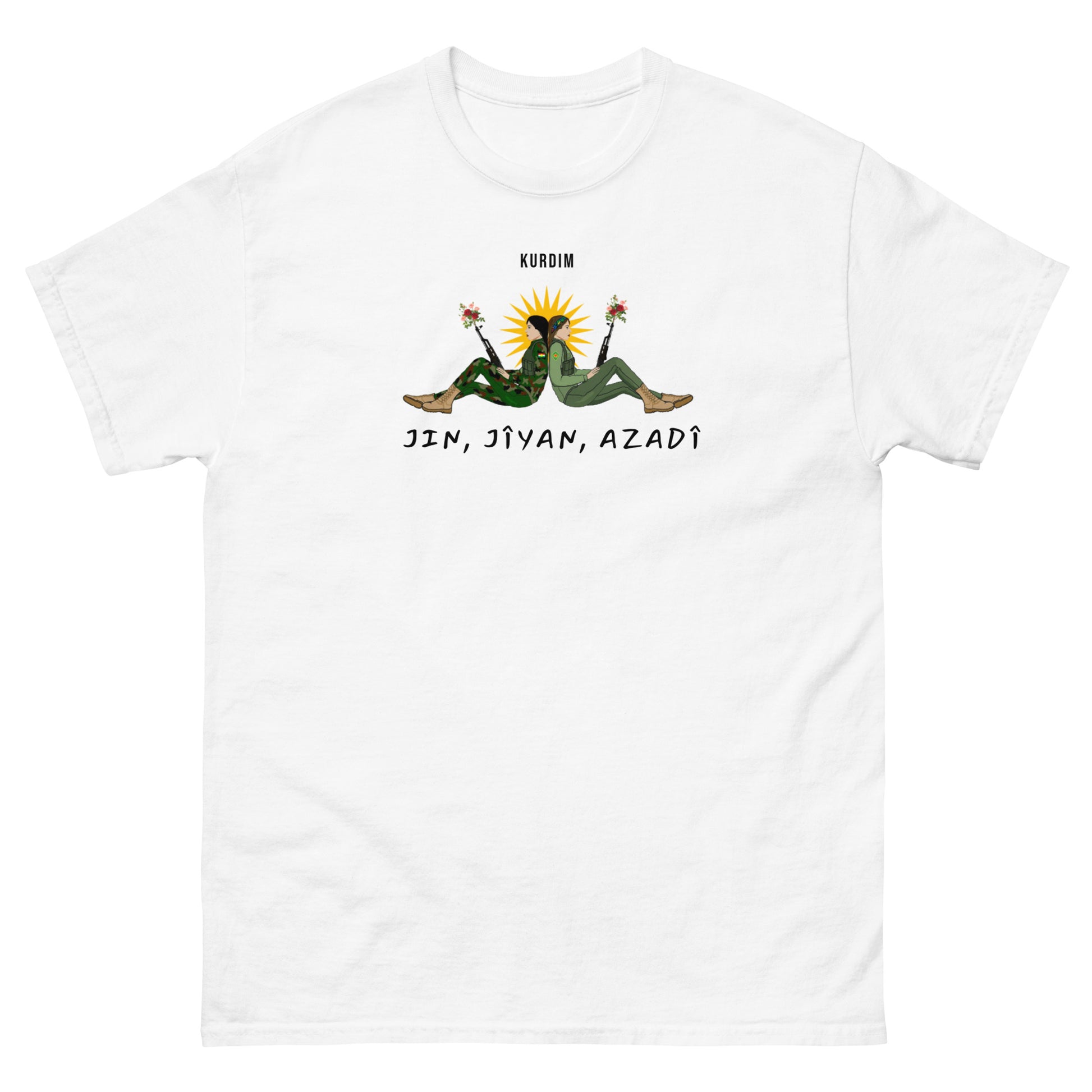 Jin. Jîyan. Azadî. Printed T-Shirt - White